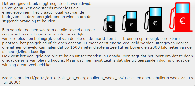 - Bij het samenstellen van deze leerbron is gebruik gemaakt van een arrangement uit de Stercollecties van VO-Content. Het oorspronkelijke arrangement is eigendom van VO-Content en gedeeld onder de CC-BY SA licentie. https://maken.wikiwijs.nl/82622/Fossiele_bronnen_raken_op_vmbo_kgt34