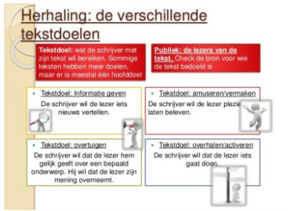 - Techniek en woordenschat; Schrijven; Spelling, interpunctie en grammatica; Evalueren; Lezen van zakelijke teksten (Nederlands); Nederlands; Schrijfvaardigheid; Begrippenlijst en taalverzorging; Begrijpen; Interpreteren; Woordgebruik en woordenschat (Nederlands); Lezen van fictionele teksten en literaire teksten (Nederlands); Samenvatten; Leesvaardigheid;