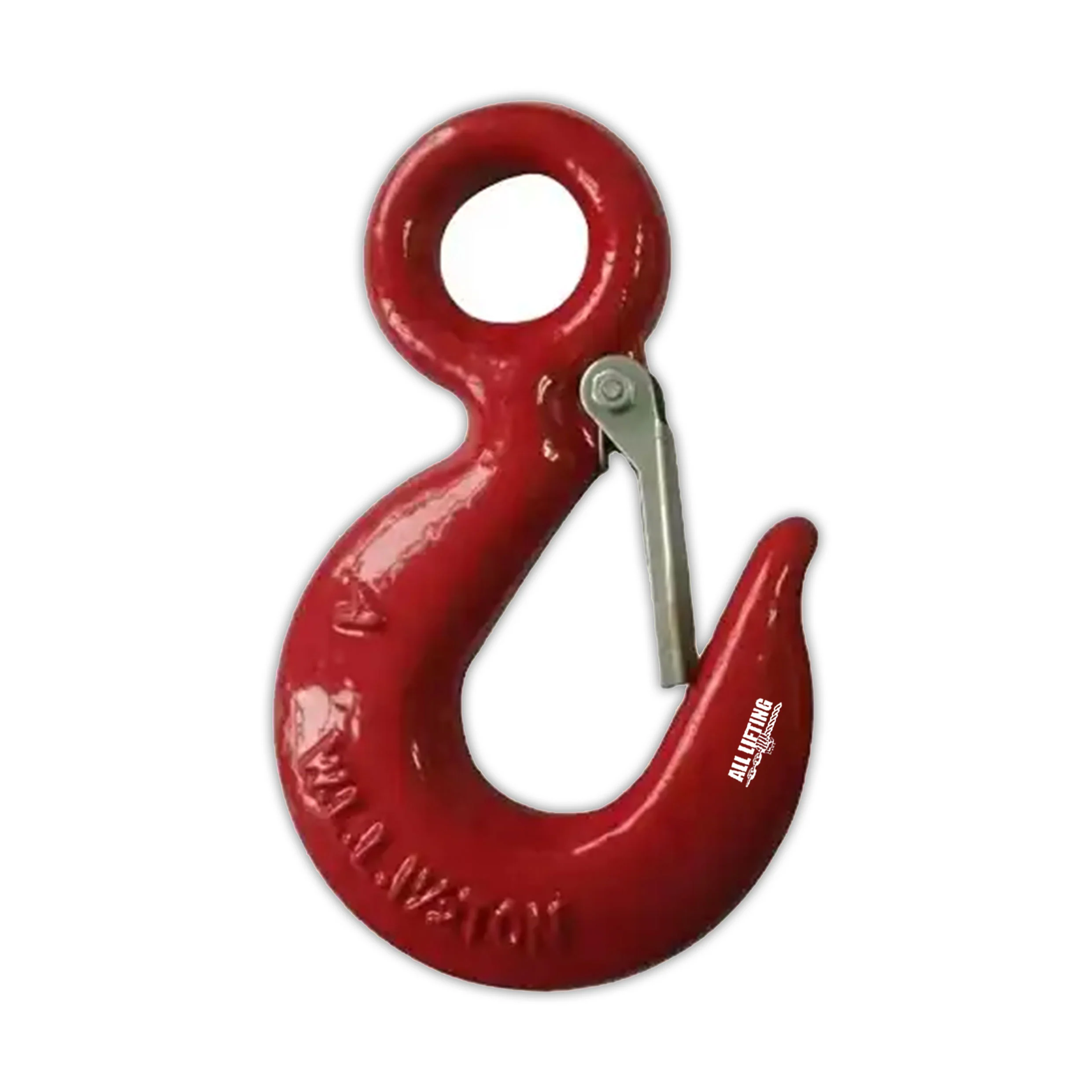 De last hangt aan het beweegbare gedeelte van de haak, zodat deze zich altijd zal sluiten wanneer er gewicht aan komt te hangen.