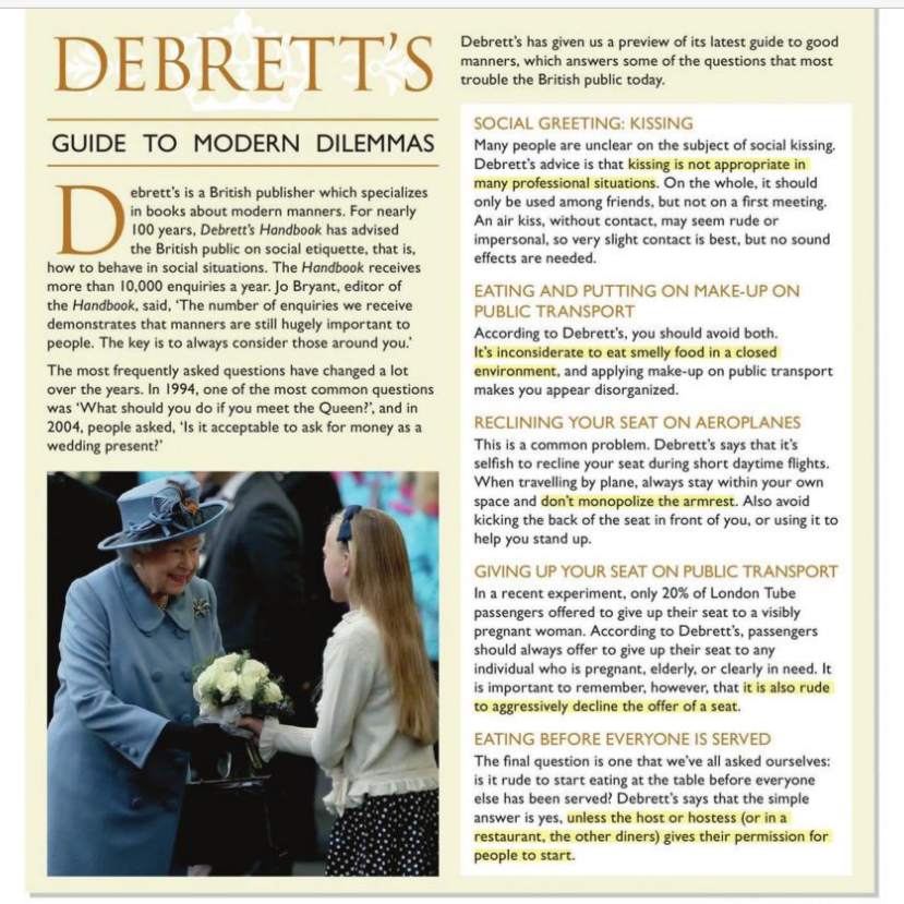 - After this lesson you will be able to have a discussion about etiquettes