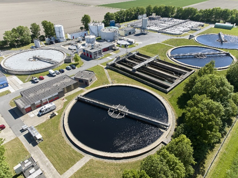 Een bezinktank in een afvalwaterzuivering