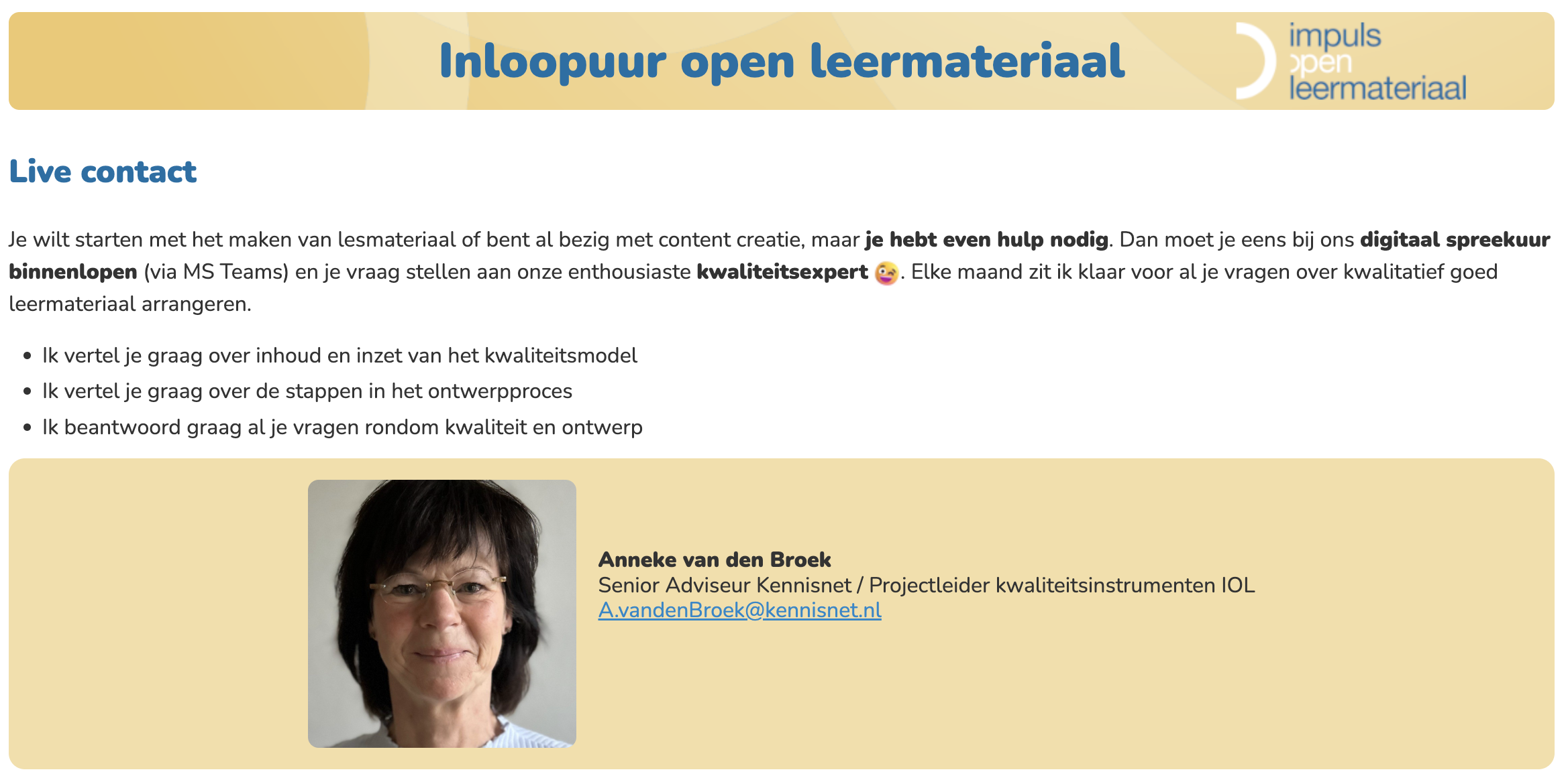 - Specifiek voor OLWP's van Impuls Open Leermateriaal.