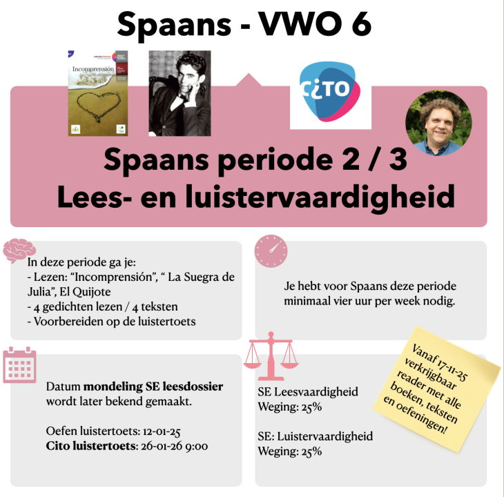 Het arrangement Spaans VWO 6 2e / 3e periode 2025 - 2026 Lees- Luistervaardigheid is gemaakt met Wikiwijs van Kennisnet. Wikiwijs is hét onderwijsplatform waar je leermiddelen zoekt, maakt en deelt.