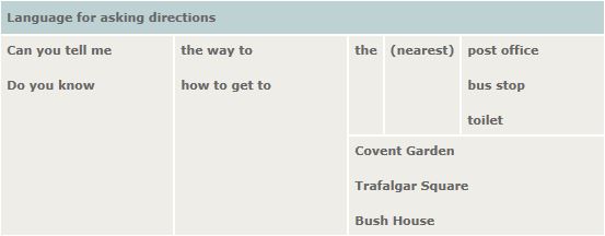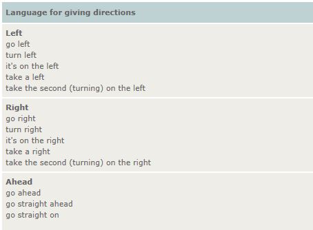 Speak English - giving directions http://www.speaklanguages.com/english/phrases/asking-and-giving-directions |