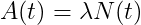The activity A of a radioactive material is defined by the rate at which decay occurs in the sample and is determined by the amount of radioactive nuclei present at time t and the decay constant λ (Eq. 3). As such, the activity of A sample is a continuously decreasing value following the same exponential curve as presented in Fig. 1.