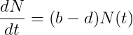 Ecological textbooks usually start their chapter on population ecology by introducing exponential and logistic growth. Consider a population of size N. If resources are unlimited, and the per capita birth (b) and death rates (d) are constant in a population closed to migration, the number of individuals added to the population per time unit (dN/dt) can be written as: