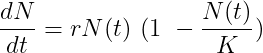 where r is called the intrinsic rate of increase. This differential equation can be solved with boundary condition N(0) = N0 to yield