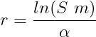 in which x is age, xm maximal age, l(x) survivorship from age zero to age x and m(x) the number of offspring produced per time unit at age x. Unfortunately this equation does not allow for a simple derivation of r; r must be obtained by iteration and the correct value is the one that, when combined with the l(x) and m(x) data, makes the integral equal to 1. Due to this complication approximate approaches are often applied. For example, in many cases a reasonably good estimate for r can be obtained from the age at first reproduction α, survival to first reproduction, S, and reproductive output, m, according to the following formula: