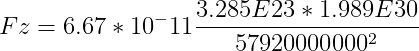 Mercurius (M = 3.285*10^23) draait op een afstand van 57910000 km van de zon (M=1.989*10^30). Wat s de zwaartekracht tussen deze 2?