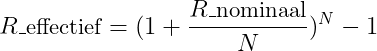Voor het berekenen van de effectieve rente kun je, als je de nominale rente weet, de volgende formule gebruiken: