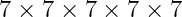 Je spreekt dit uit als 'zeven-tot-de-vijfde' of de 'vijfdemacht van '.