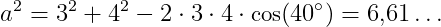 Volgens de cosinusregel geldt: . Dus en .