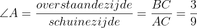 In driehoek ABC is alleen de schuine zijde en de overstaande rechthoekzijde van hoek A bekend.