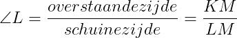 Als de de zijde van een driehoek moet berekenen, kijk je eerst wat je hebt en welke zijde je moet berekenen. In driehoek KLM is hoek L gegeven en zijde KM. We moeten hier de zijde LM berekenen. LM is de schuine zijde en KM is de overstaande rechthoekzijde van hoek L. Deze twee zijden komen voor in de sinus regel. Dus daarmee gaan we aan de slag.