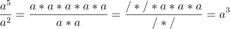 Dit is ook te zien wanneer we de machten gaan schrijven als herhaalde vermenigvuldigingen: