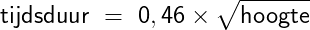Hierin is de tijdsduur van de sprong in seconden en de hoogte waar vanaf gesprongen wordt in meters.