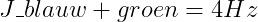 Dit levert dan de splitsing op zoals hier rechts. Het blauwe proton levert een signaal op dat opgesplitst gaat worden, door het rode proton met een koppelingsconstante van 6 Hz. Het verkregen doublet wordt wederom opgesplitst in doublets door het groene proton met een koppelingsconstante van 4 Hz.
