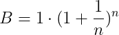 Hierin staat B voor het bedrag op de rekening na één jaar, en n voor het aantal keer dat de interest wordt uitgekeerd.